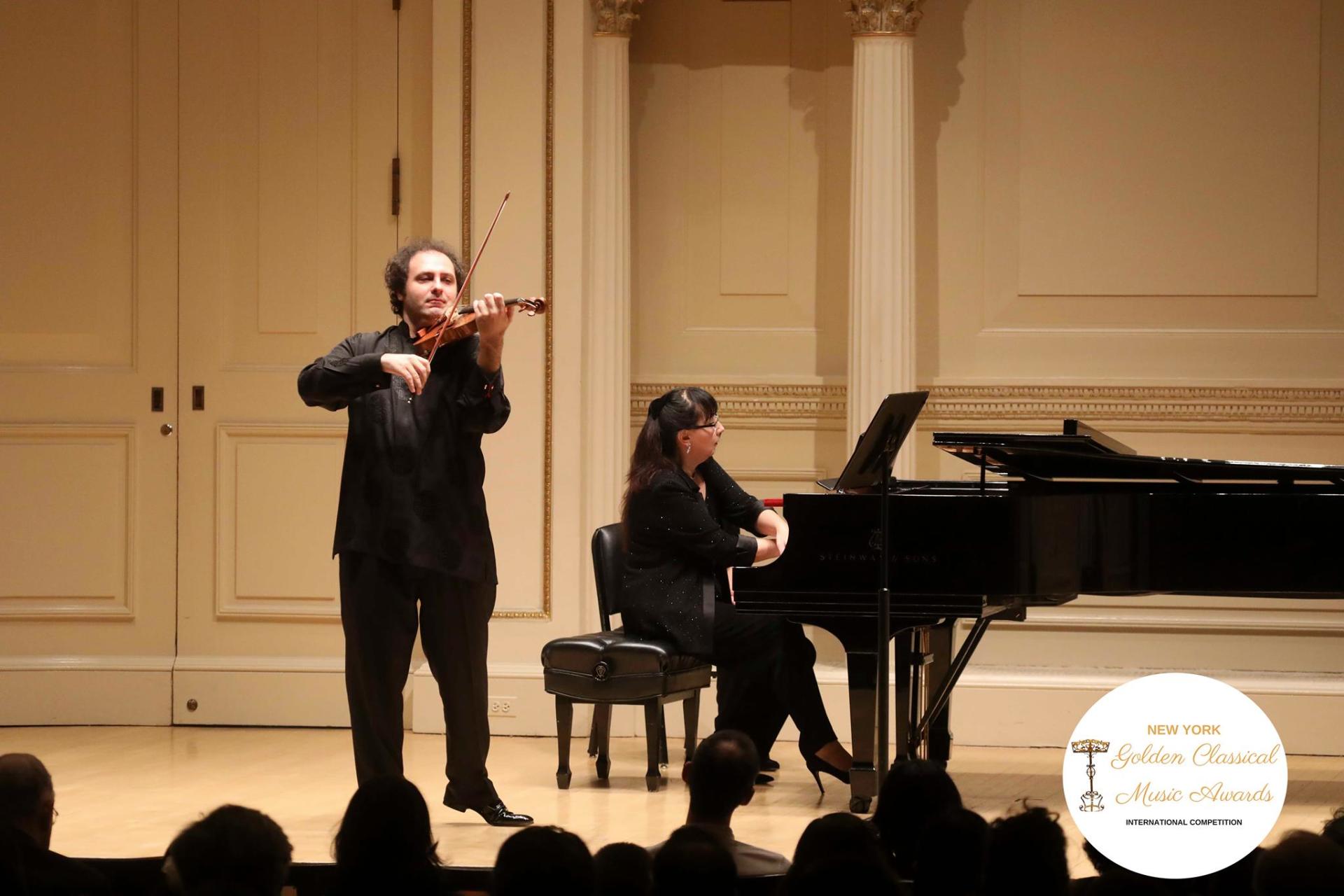 Violinist Gian Paolo Peloso inaugurated The Golden Classical Music Awards. Mr. Peloso, pupil of Ruggiero Ricci, Igor Ozim, and Viktor Pikayzen, has performed in Europe, Asia, and the United States, notably at the Martha Argerich Festival and at the Kuhmo Chamber Music Festival. Together with pianist Tatyana Pikayzen, laureate of the Chopin International Piano Competition, Peloso performs Busoni’s Violin Sonata No. 2 on the composer's 150th birthday.
